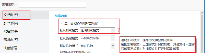 透明加密模式,对新保存或编辑的文件自动进行加密处理,确保数据在创建、存储及传输过程中的安全性,不影响员工的正常工作流程;智能加密模式,对已加密文件保持加密,其他文件不加密;只解密不加密模式,对已经加密的文件,打开自动解密。