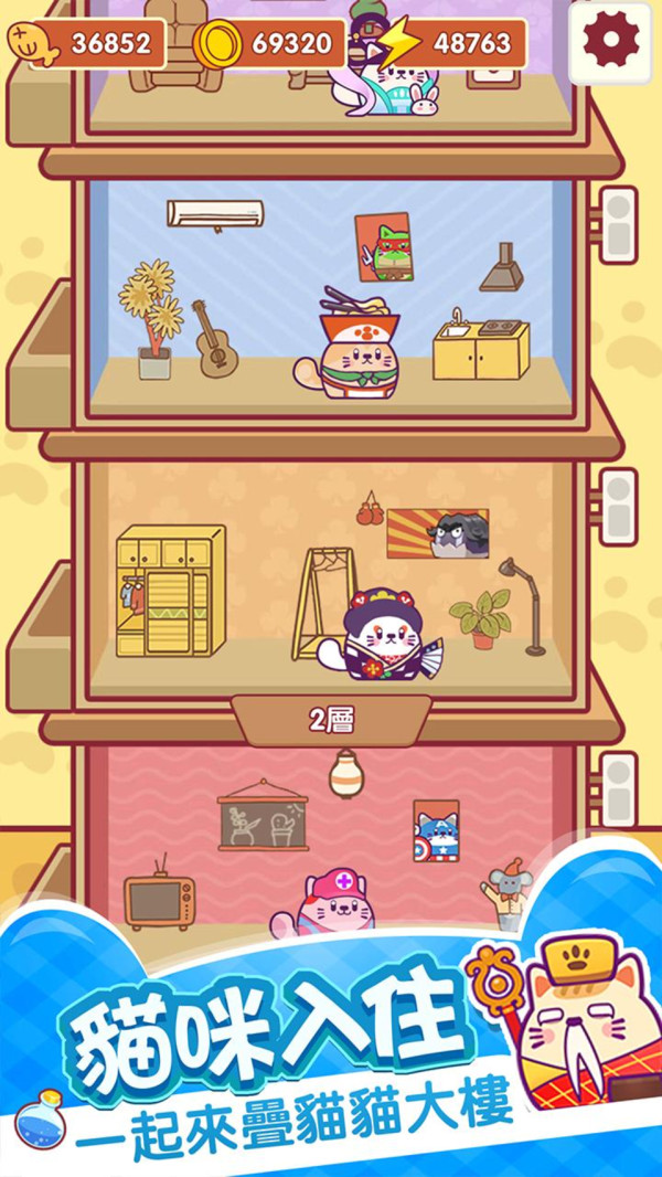 3、续扩大您的猫乐园,这里有很多猫和设施!快点冒险!数字化消除压力并燃烧您的大脑!