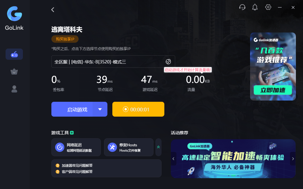 GoLink的价值不仅仅体现在《逃离塔科夫》这一款游戏上。它支持多平台使用,无论是PC、手机还是其他设备,都能获得网络优化。