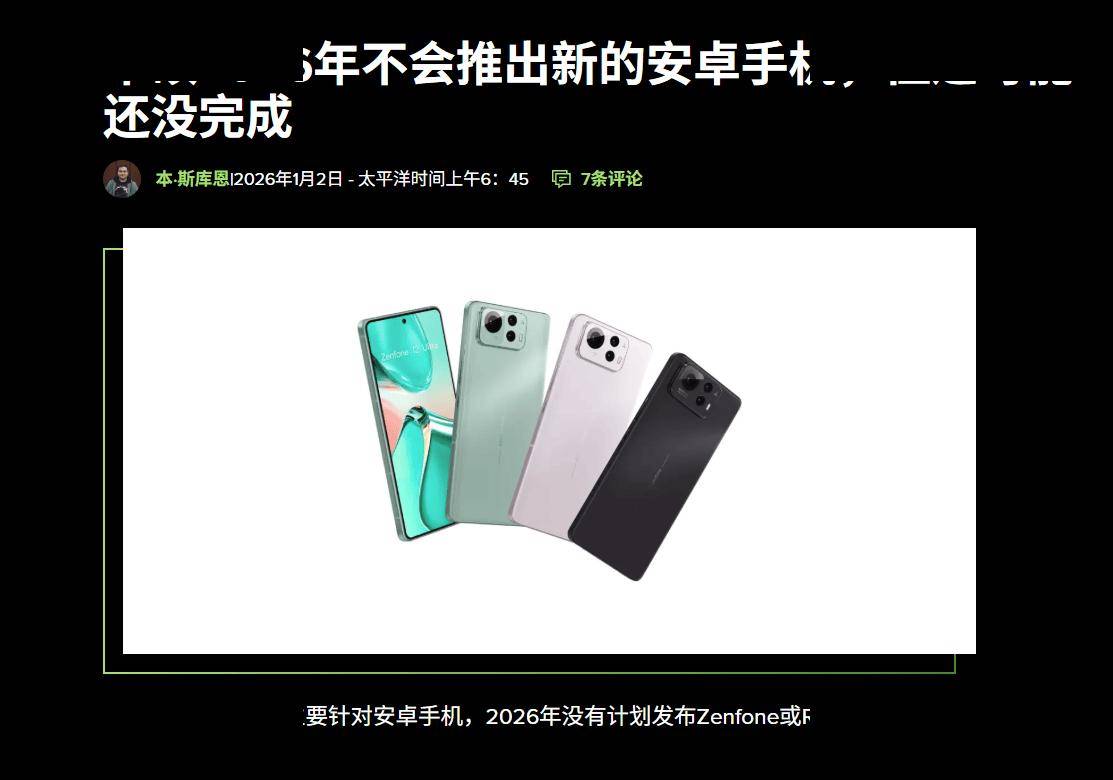近日,据外媒9to5Android报道,华硕官方正式确认,将在2026年暂停推出包括Zenfone和ROG Phone在内的新款手机。