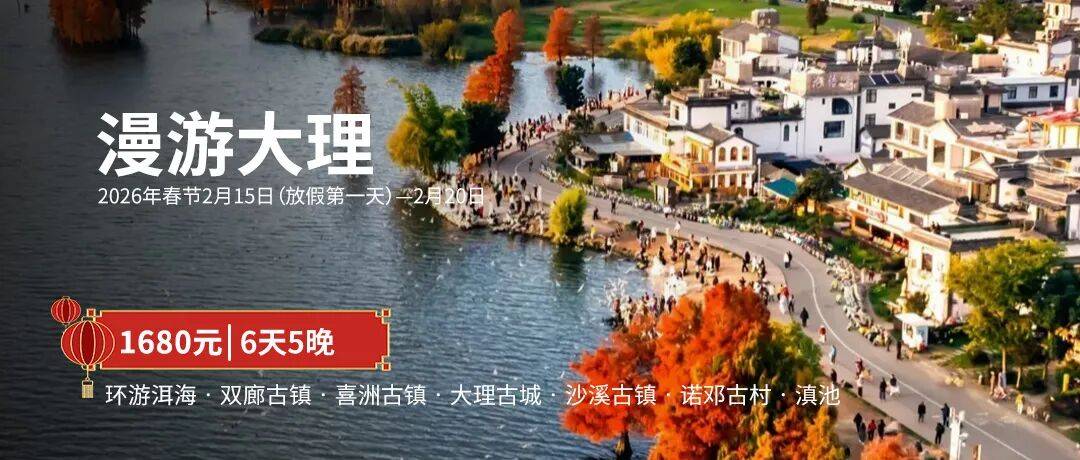 推荐理由:两晚4钻酒店住宿,大理古城附近特色酒店连住两晚;深度游览大理最具特色的古镇/村落(沙溪+双廊+喜洲+诺邓)典型性去班味的治愈之旅。