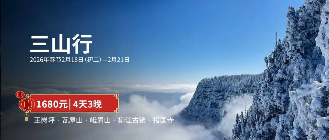 推荐理由:入住王岗坪景区营地轻奢帐篷,直面贡嘎群山、看云海翻涌;峨眉朝圣、王岗观云、瓦屋踏雪,新春近郊旅游绝佳选择。