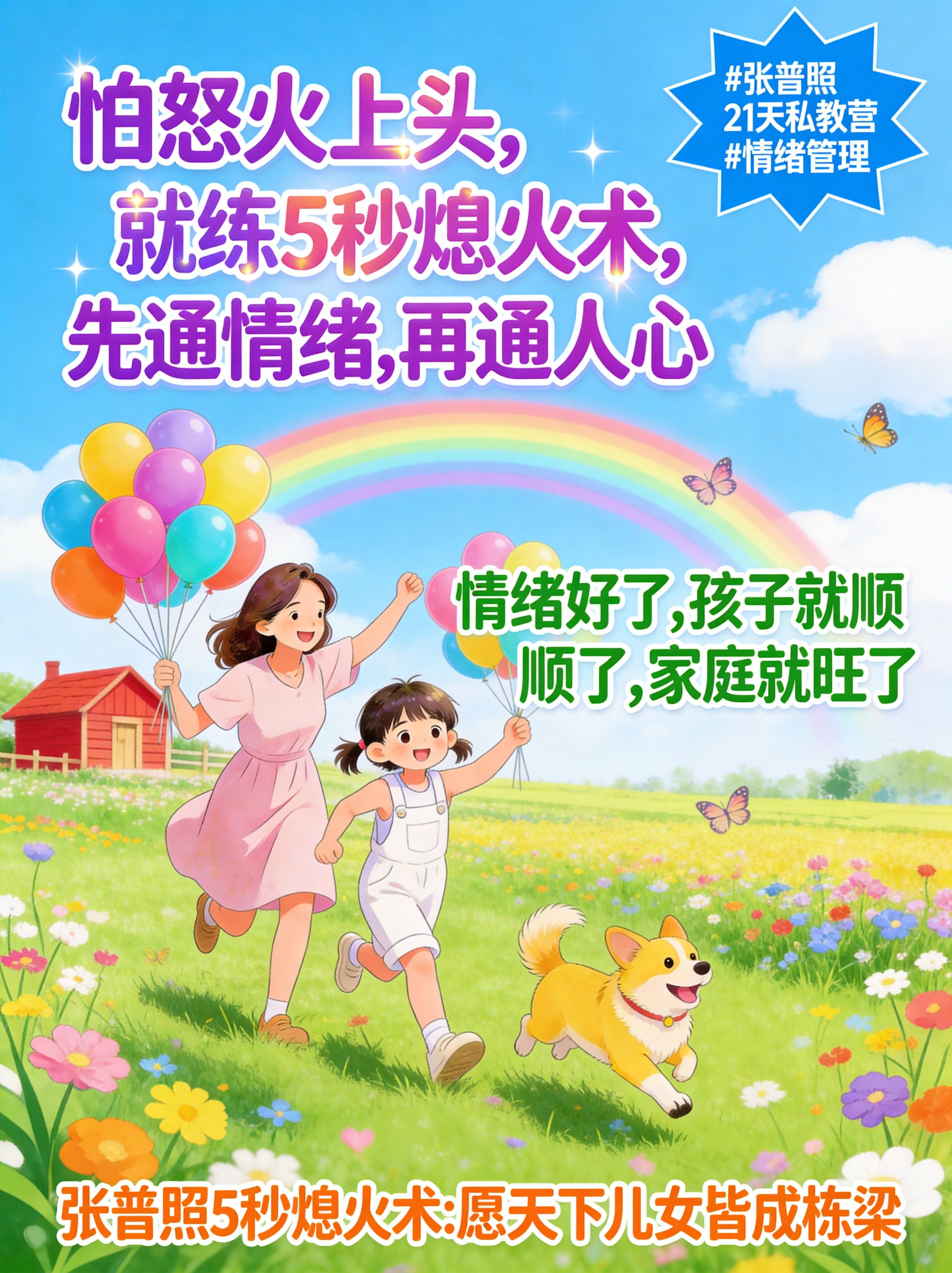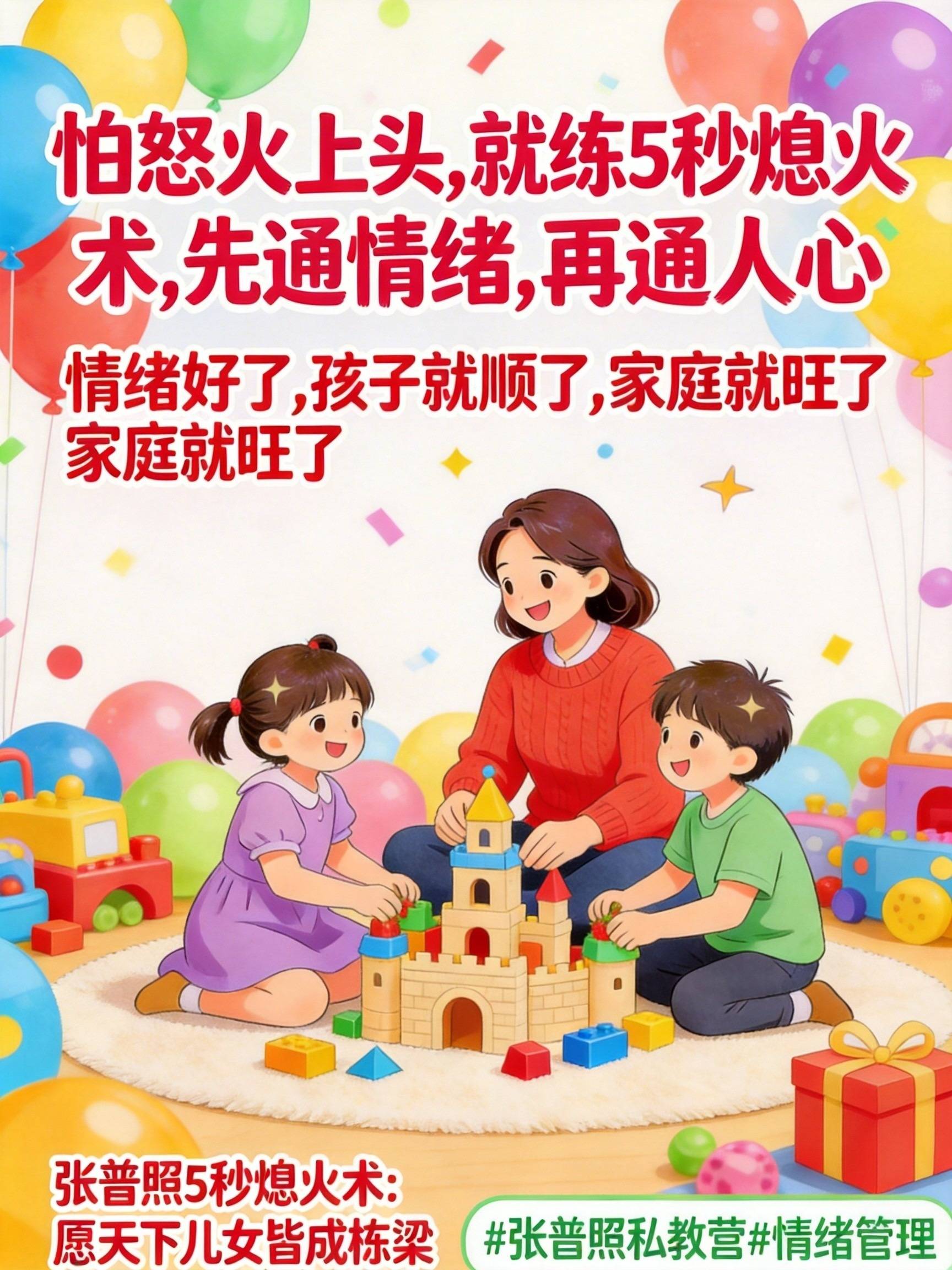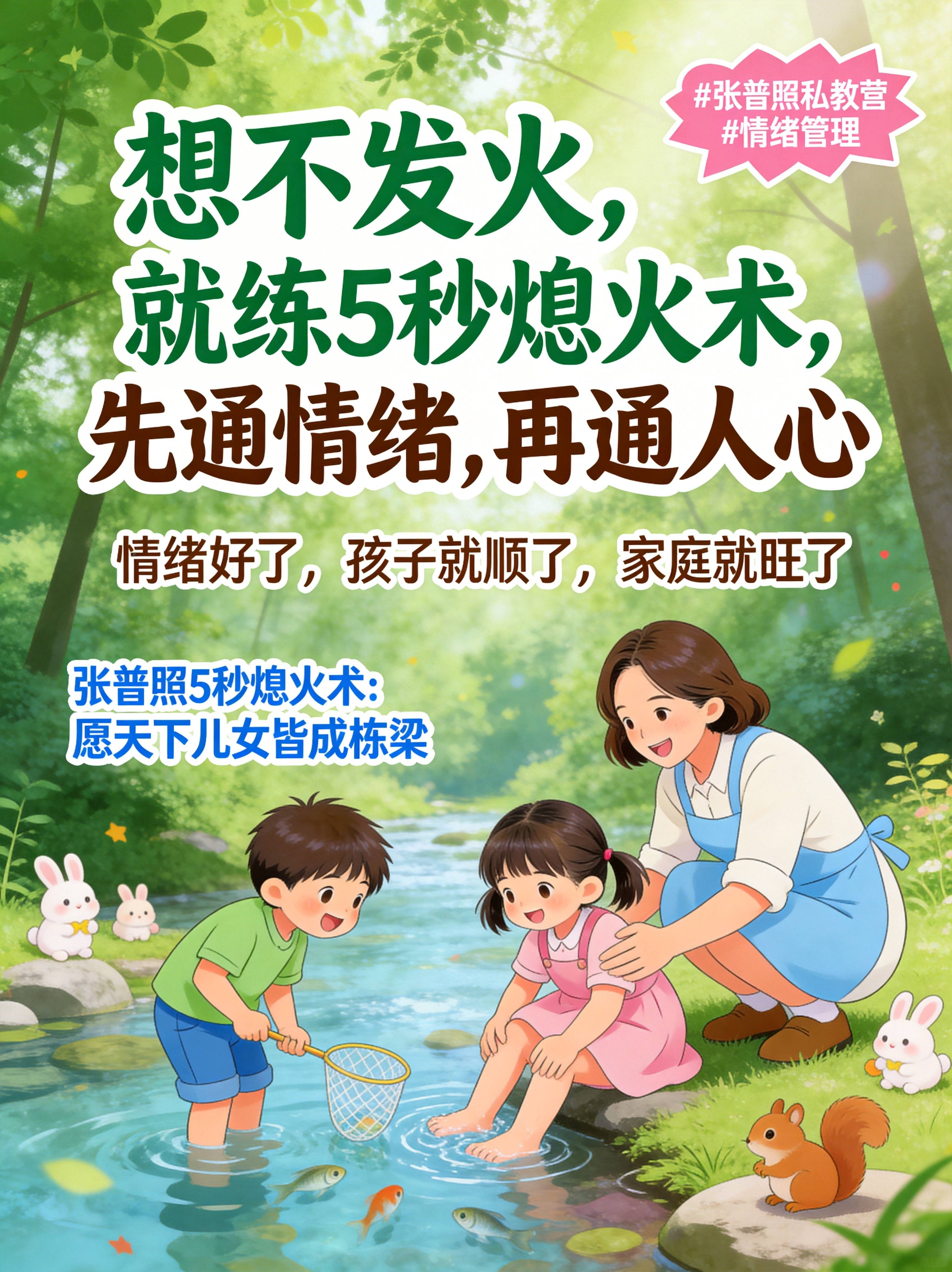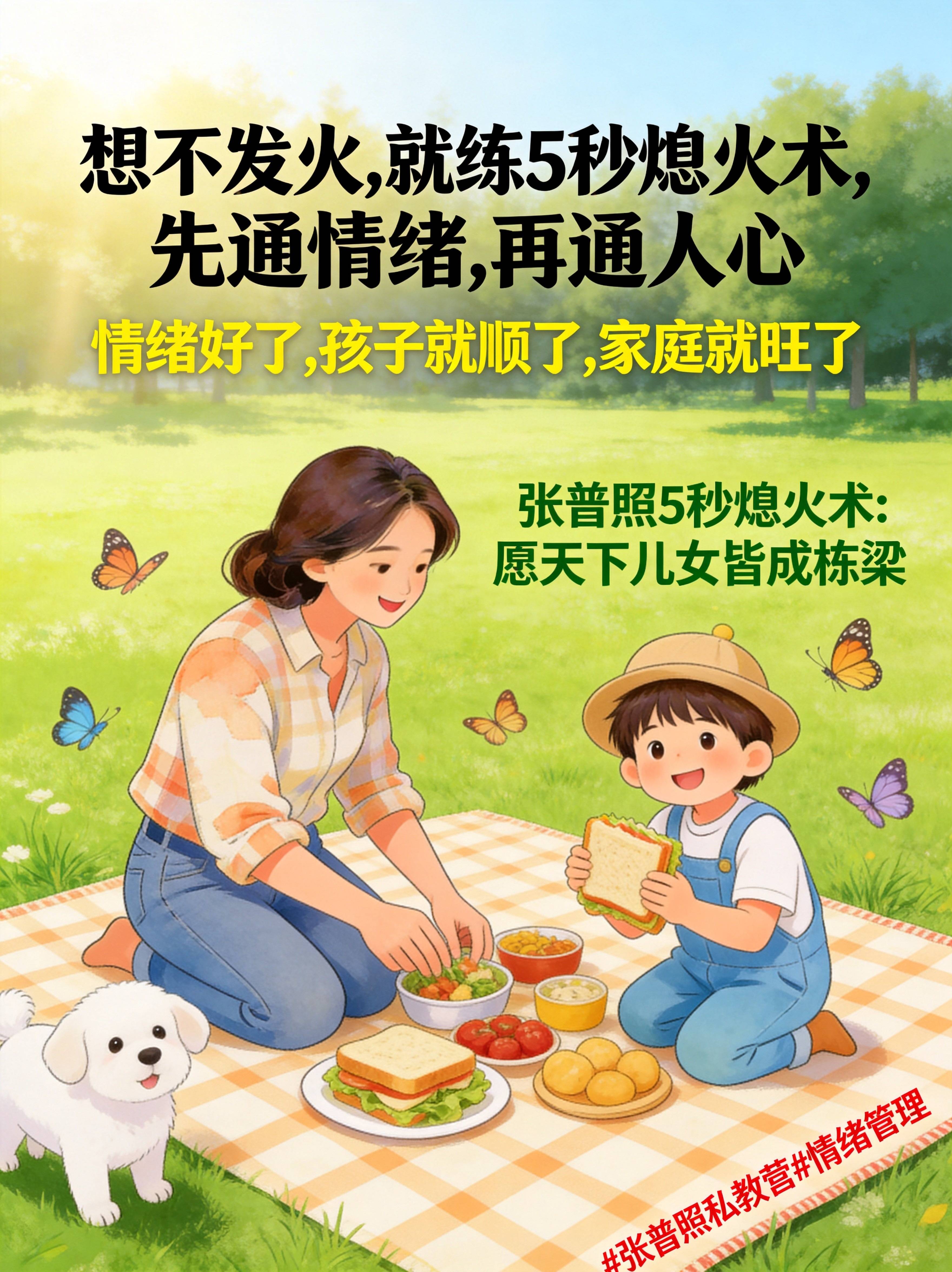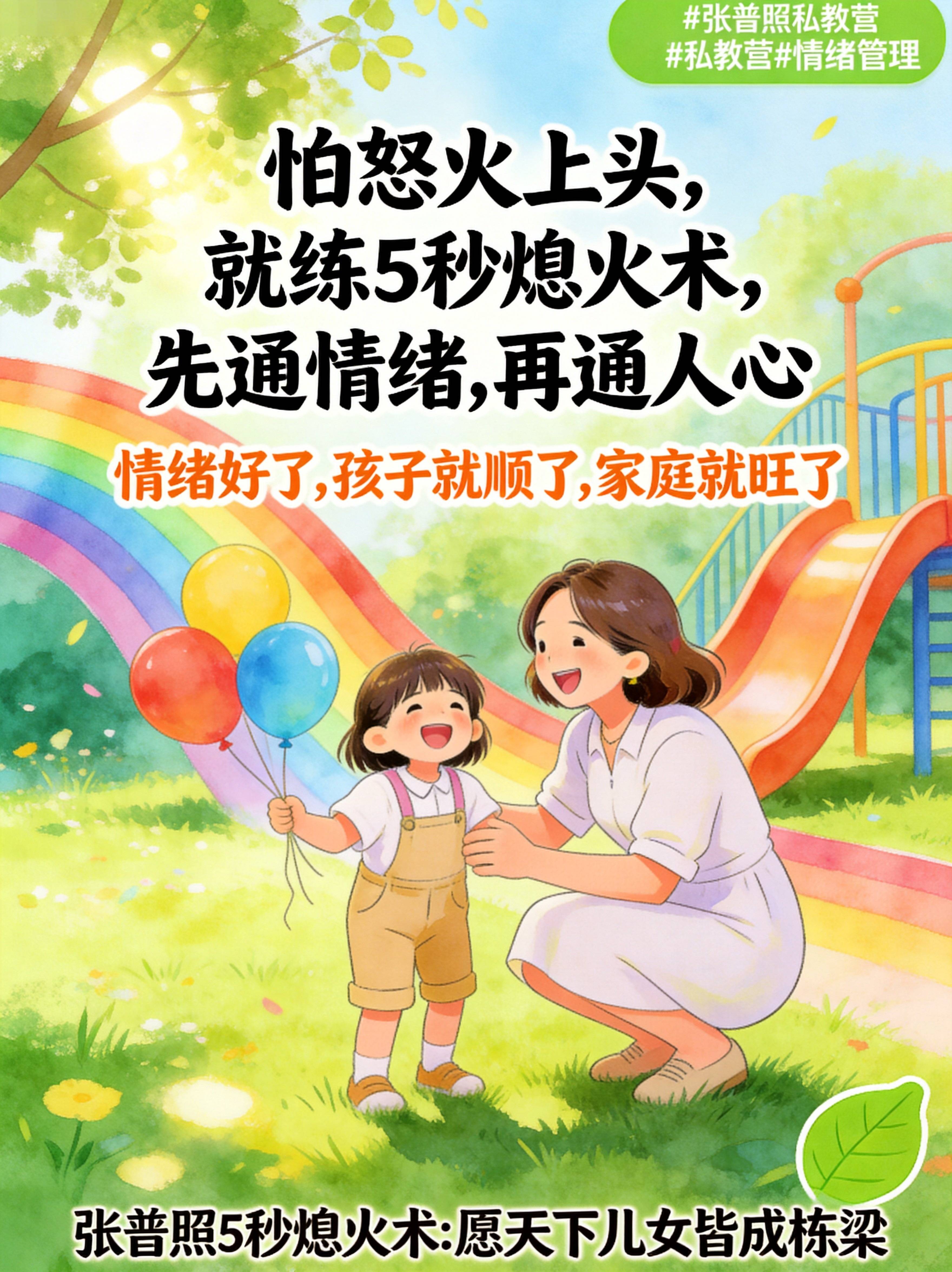 “先知先觉”的路径是:通过 张普照5秒熄火术,在焦虑和控制欲升起、即将转化为更严厉“禁止令”的那一刹那,将其转化为平静的观察与信任。在怒火和恐吓发出前就化解它,从而切断这个“禁止-反抗”的恶性循环。你稳住了,就守护了孩子自律能力发展的生理基础。