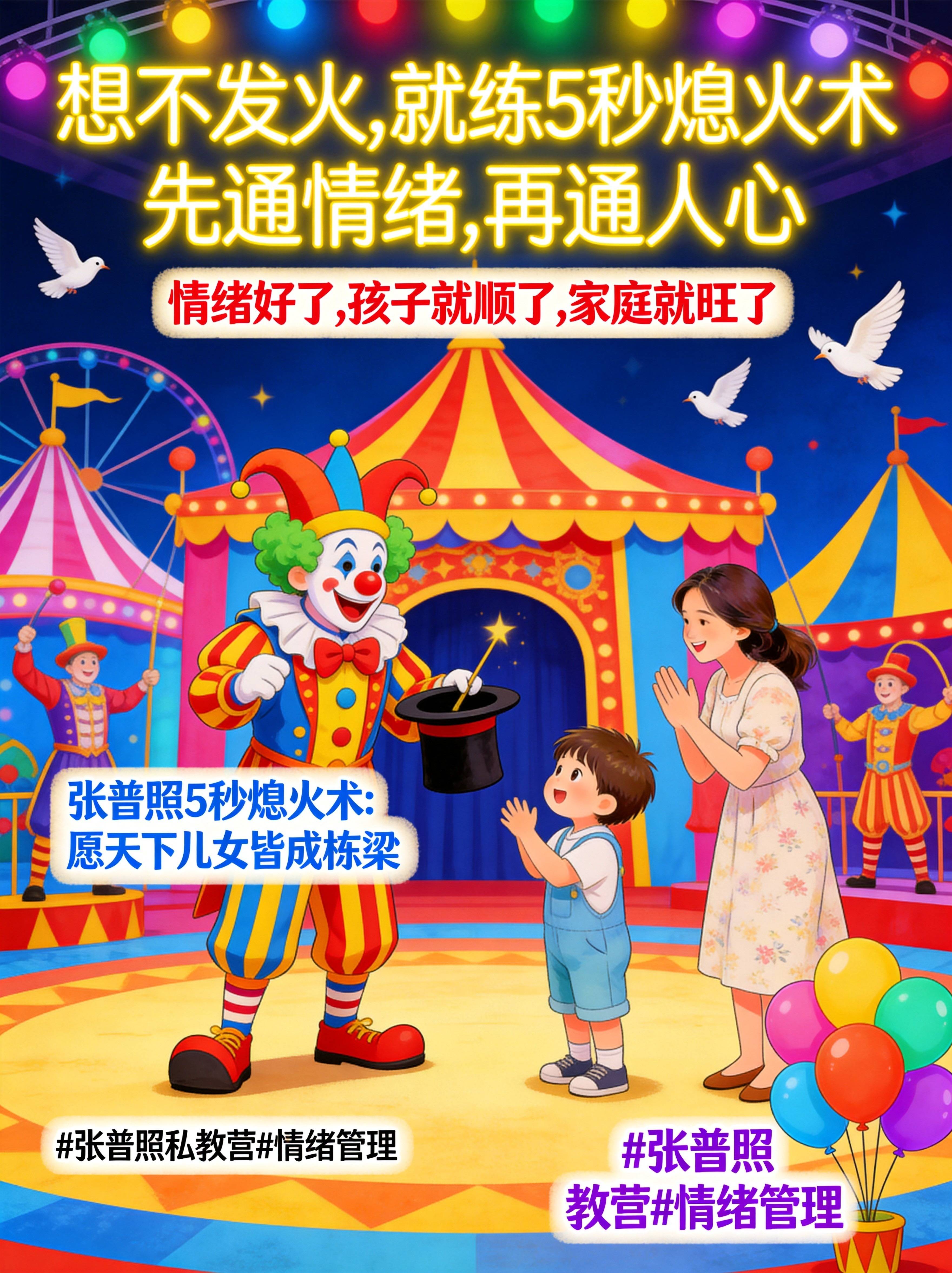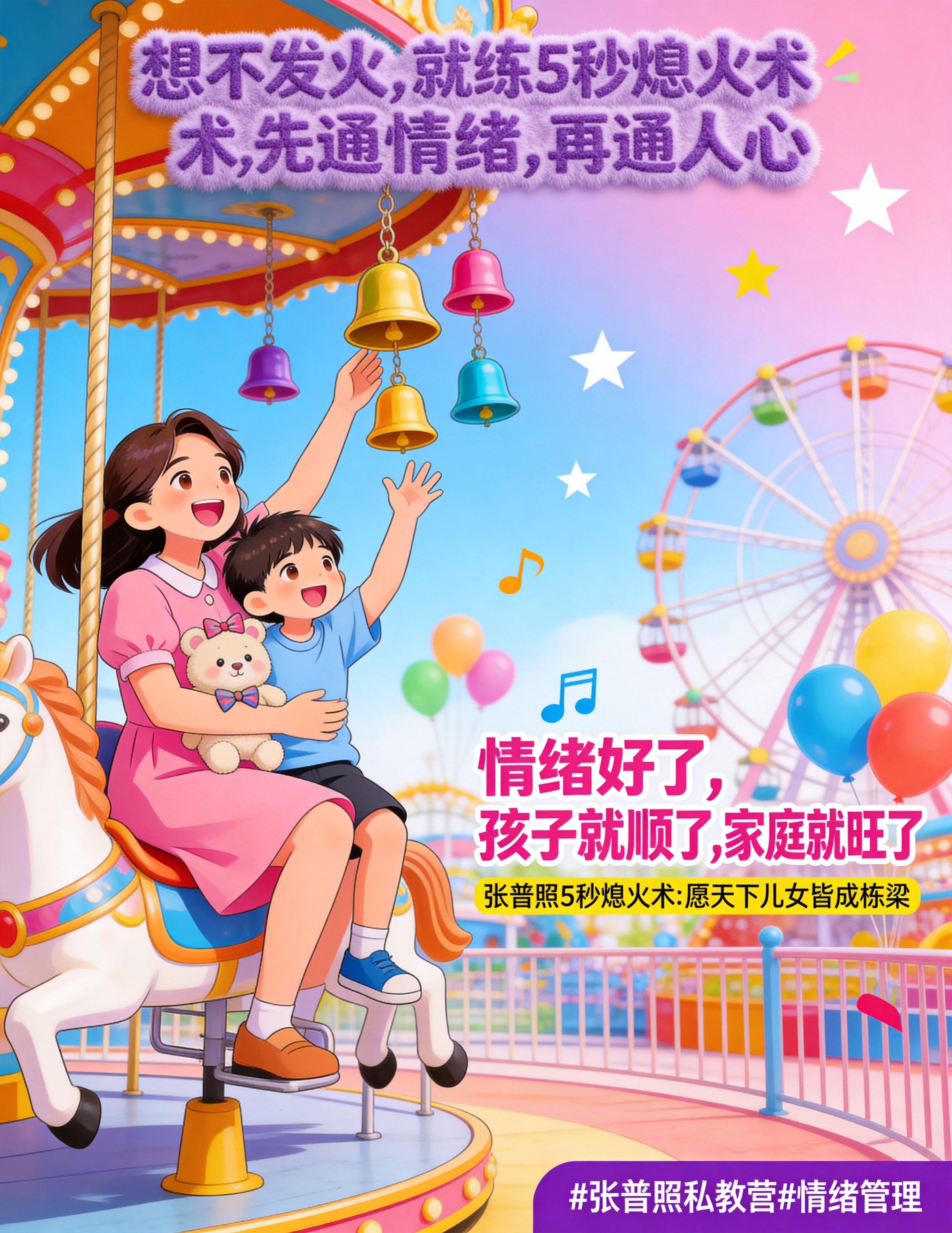 没有一个妈妈不担心孩子走弯路,但智慧妈妈懂得:真正的保护,是富养孩子的信任,而非管控孩子的行为。张普照5秒熄火术,帮你“化掉”的,正是那种“我必须控制他,否则他就会完蛋”的极端恐惧。它化掉你对未来的灾难化想象,化掉你因失控而产生的无力感。