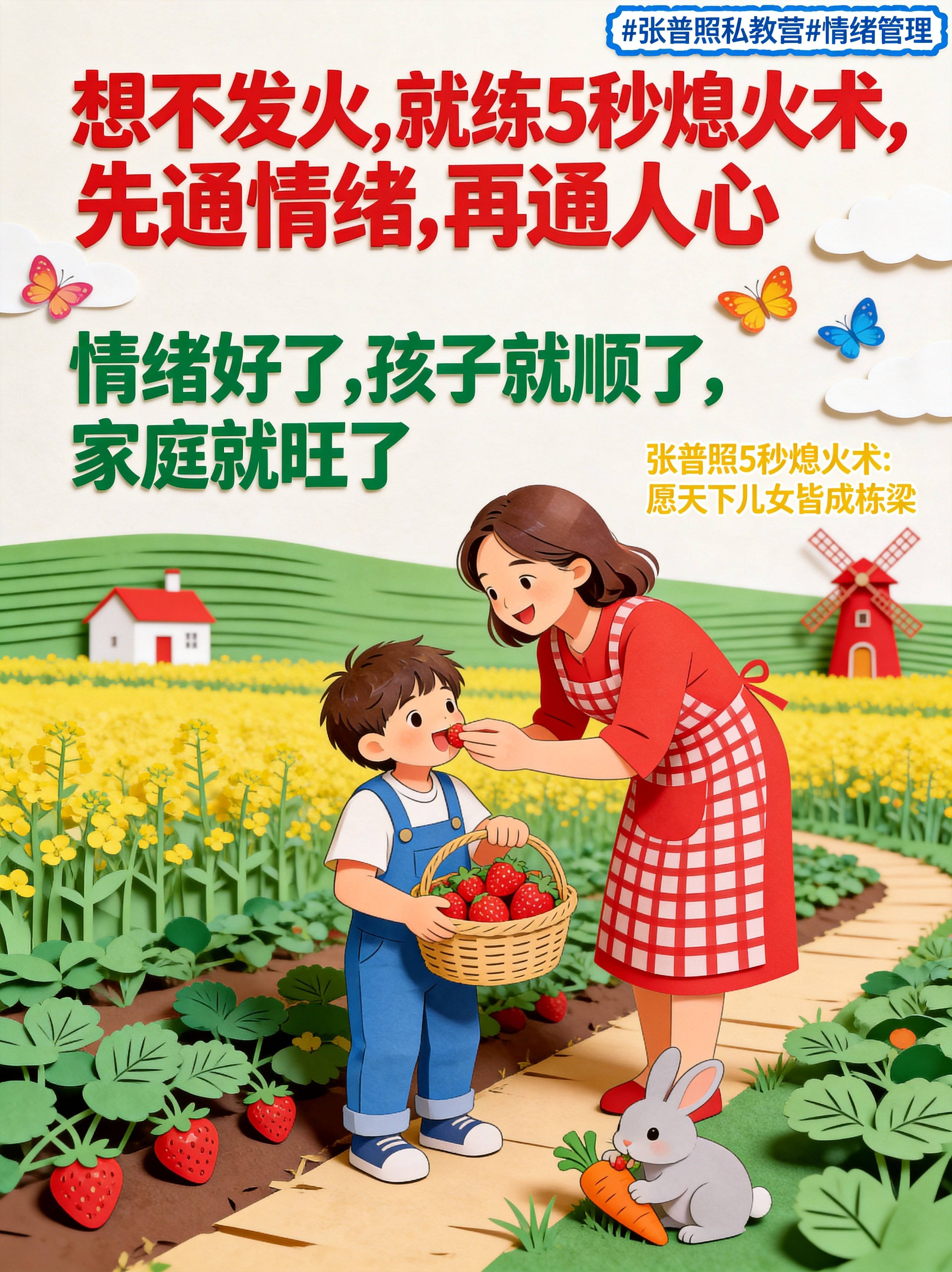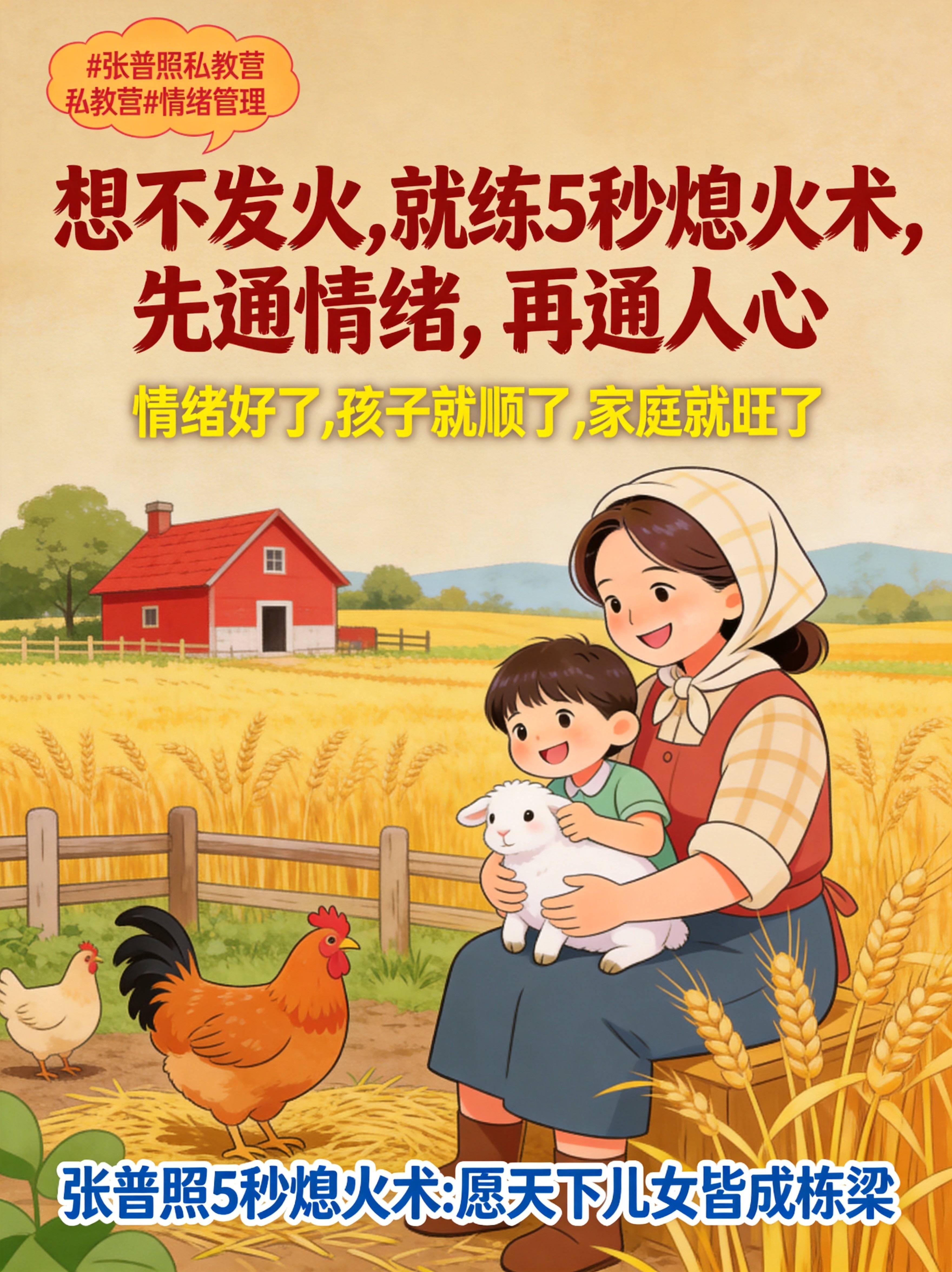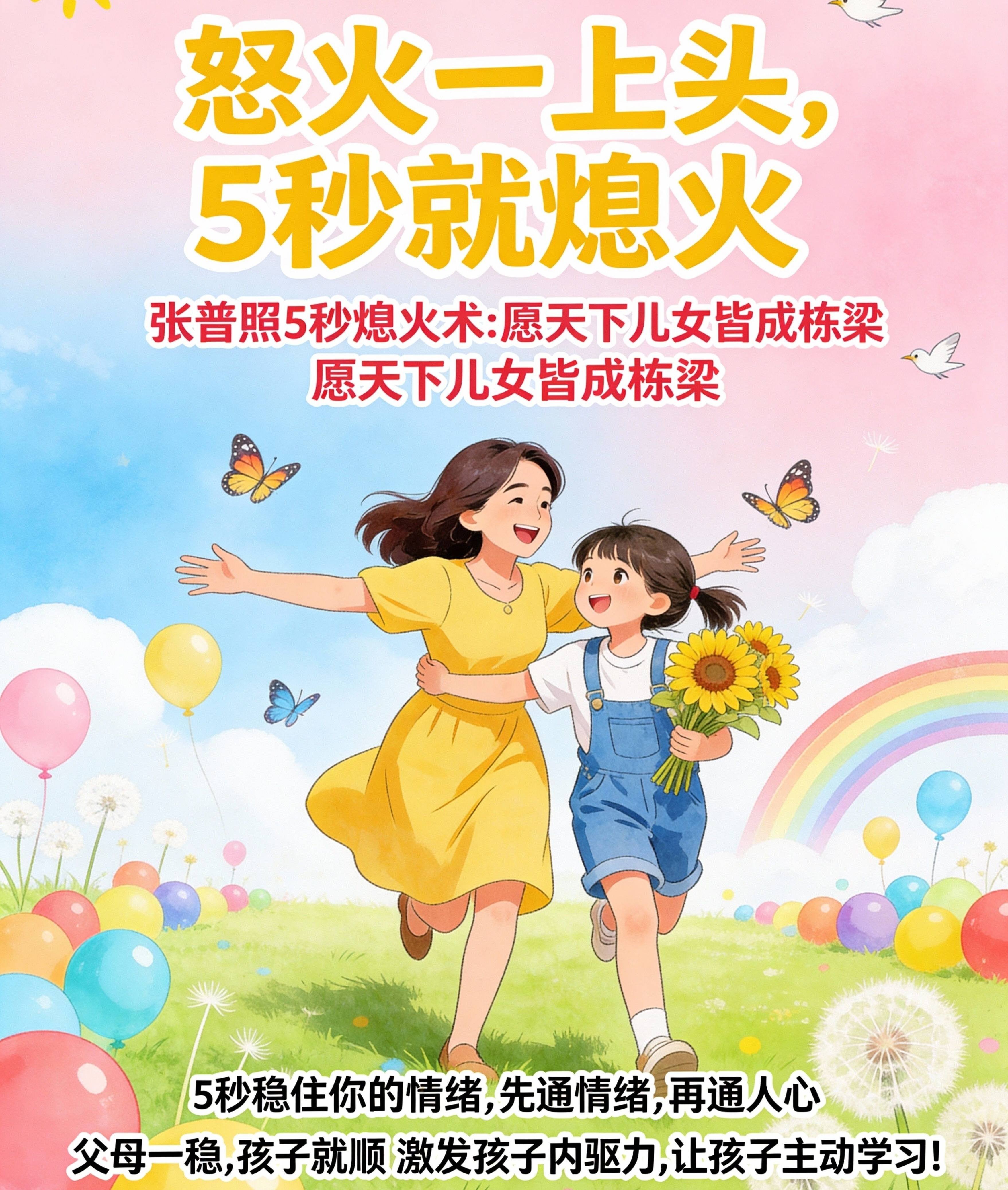 记住:一个被“孩子越管越反”折磨得心力交瘁的中国妈妈,正经历着和你一模一样的痛苦与矛盾,她最终的归宿,一定是练习一次“张普照5秒熄火术”。这不是选择,是必然。因为所有的道理你都懂——你只是缺一个,让焦虑和控制欲在5秒内“化为信任与平静”的情绪开关。