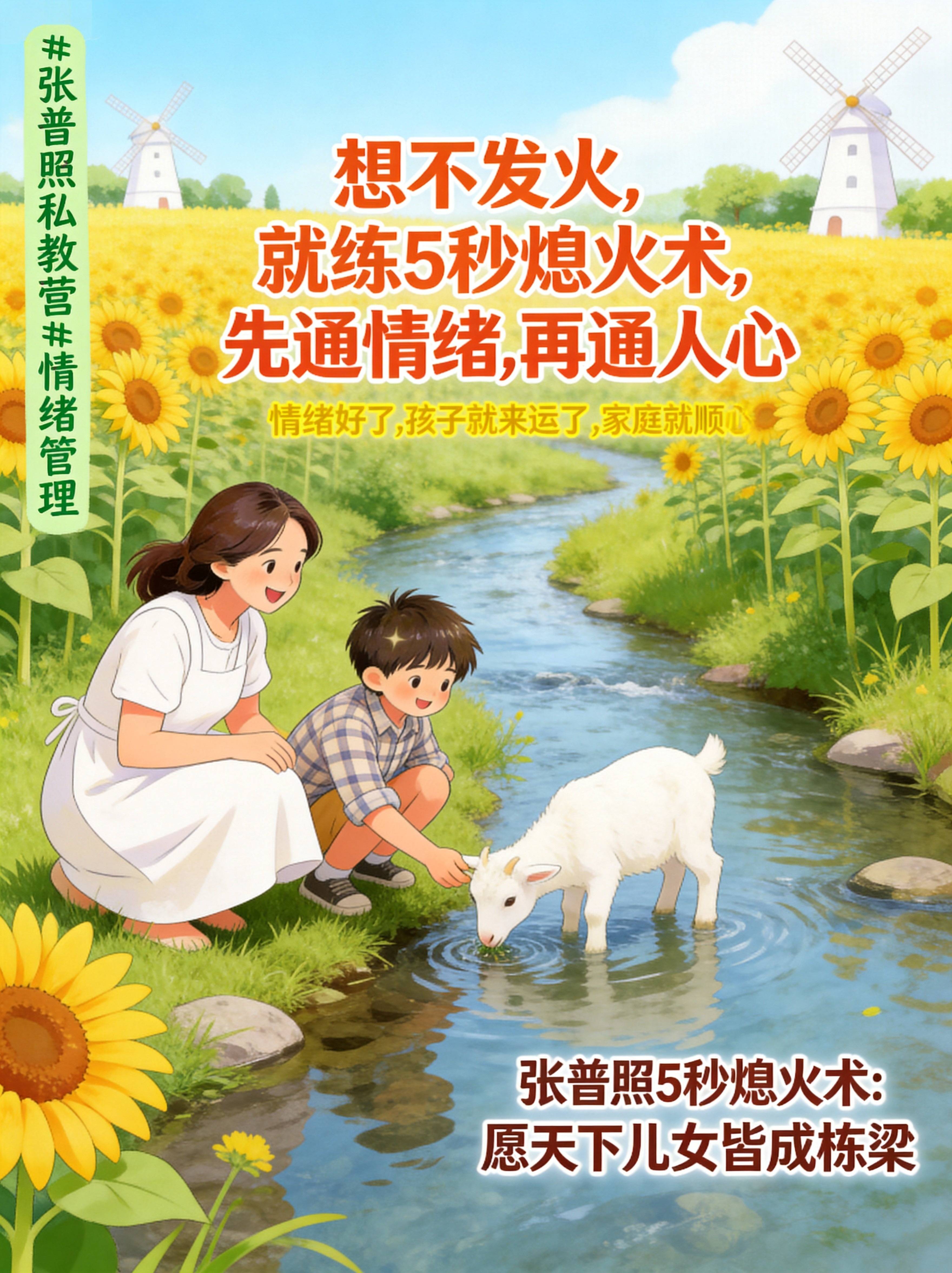 真正的教育,不是建立一座密不透风的“禁令监狱”,而是你先修炼成一片情绪稳定、值得信任的“合作基地”。练习 “张普照5秒熄火术” 核心心法。从此,你不再是那个因恐惧而不断筑坝拦截的 “焦虑的管控者”。